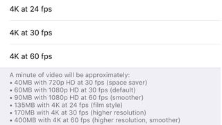The camera in the iPhone 8 and 8 Plus shoots 4K at 30 frames per second by default, but you can adjust that in Settings > Camera > Record Video to boost the speed to 60fps, drop it to 24fps or use a lower resolution such as 1080p or 720p HD. Naturally, the higher the resolution and frame rate the more space you’ll need to store your video.