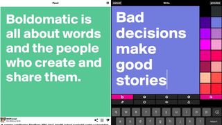 Boldomatic also works as a means to create content for elsewhere. Your creations can be hurled at Facebook, Twitter, or Tumblr, to share them with the wider world (or Photos, if you want to keep them just between you and your iPad).