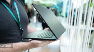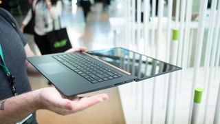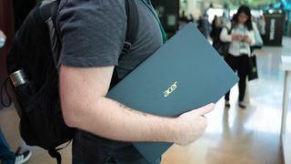 Holding the Swift 5 reminds us of the LG gram 15 quite a bit, with Acer’s laptop weighing just two tenths of a pound less than LG’s. This is thanks to an all-new compound material used to comprise the laptop’s base and lid.
