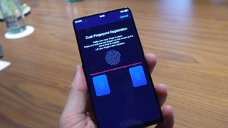 Holding a finger on each of the blue on-screen pads will register your dual-fingerprint
